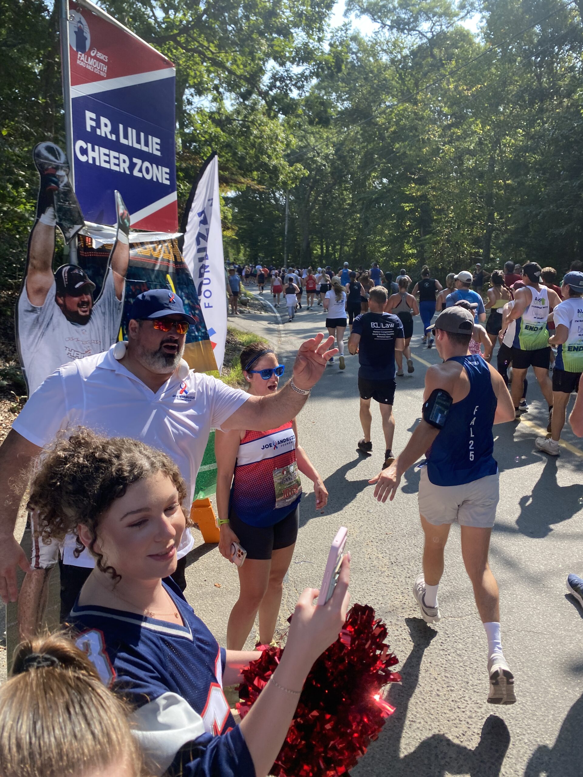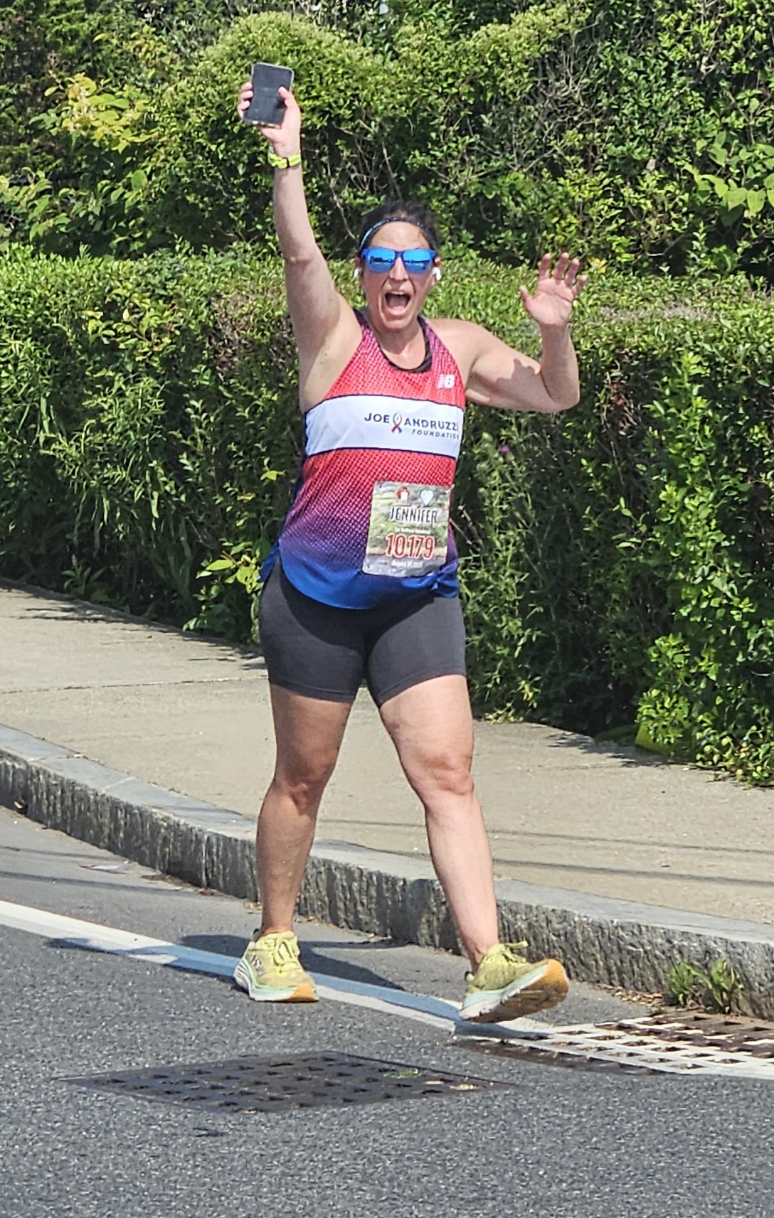 JAF was proud to be an Official Cheer Zone sponsored by Red Bull this year, spreading high-fives, hugs, and positive vibes to every runner—especially our amazing team members. Joe and Jen Andruzzi, JAF staff, and friends were all cheering loudly as runners passed by.