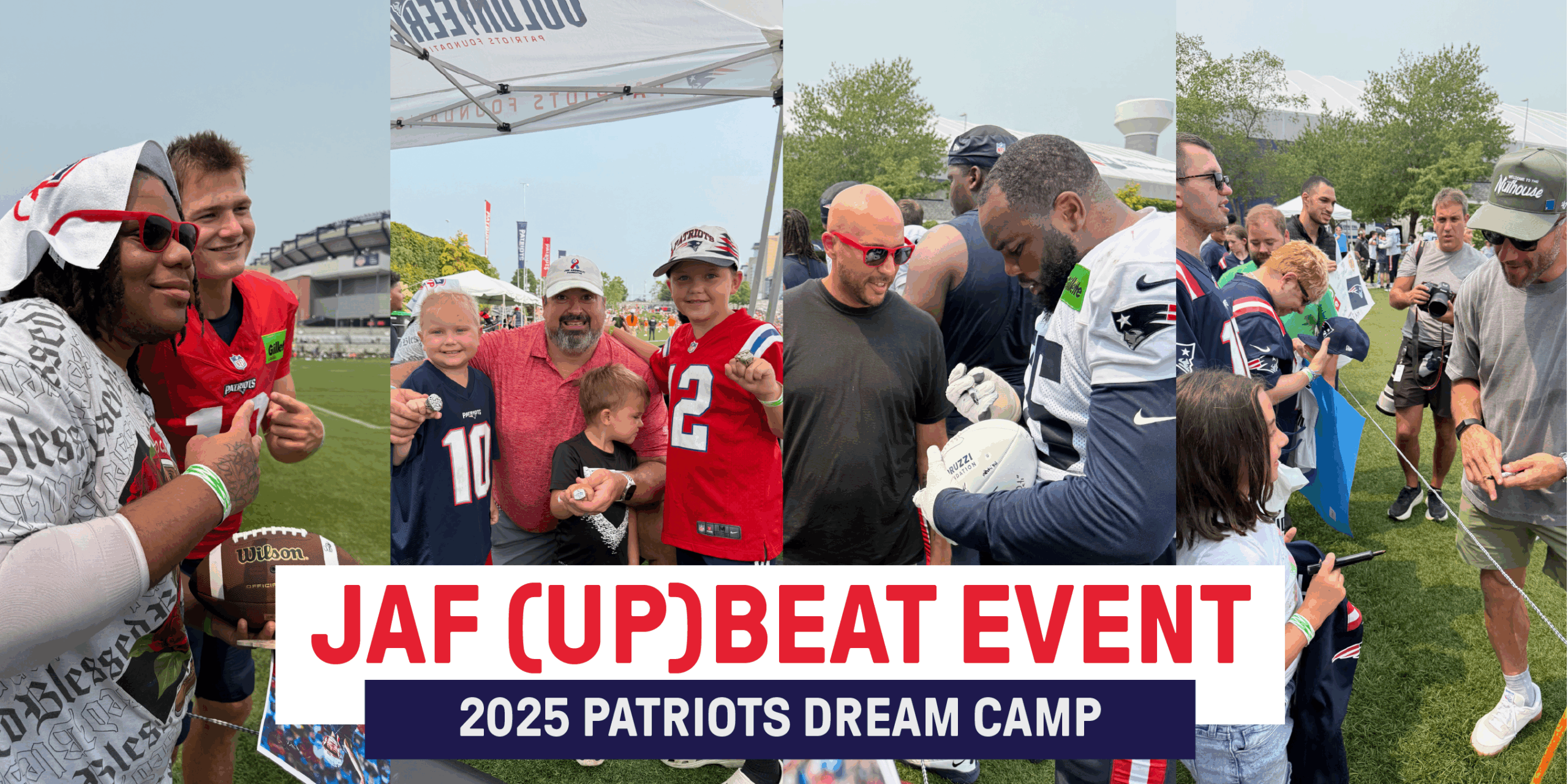 This month, JAF was honored to host eight New England cancer patients and their families at Patriots Training Camp, thanks to the incredible generosity of the New England Patriots Foundation. From the VIP tent, families had front-row seats to all the action on the field.